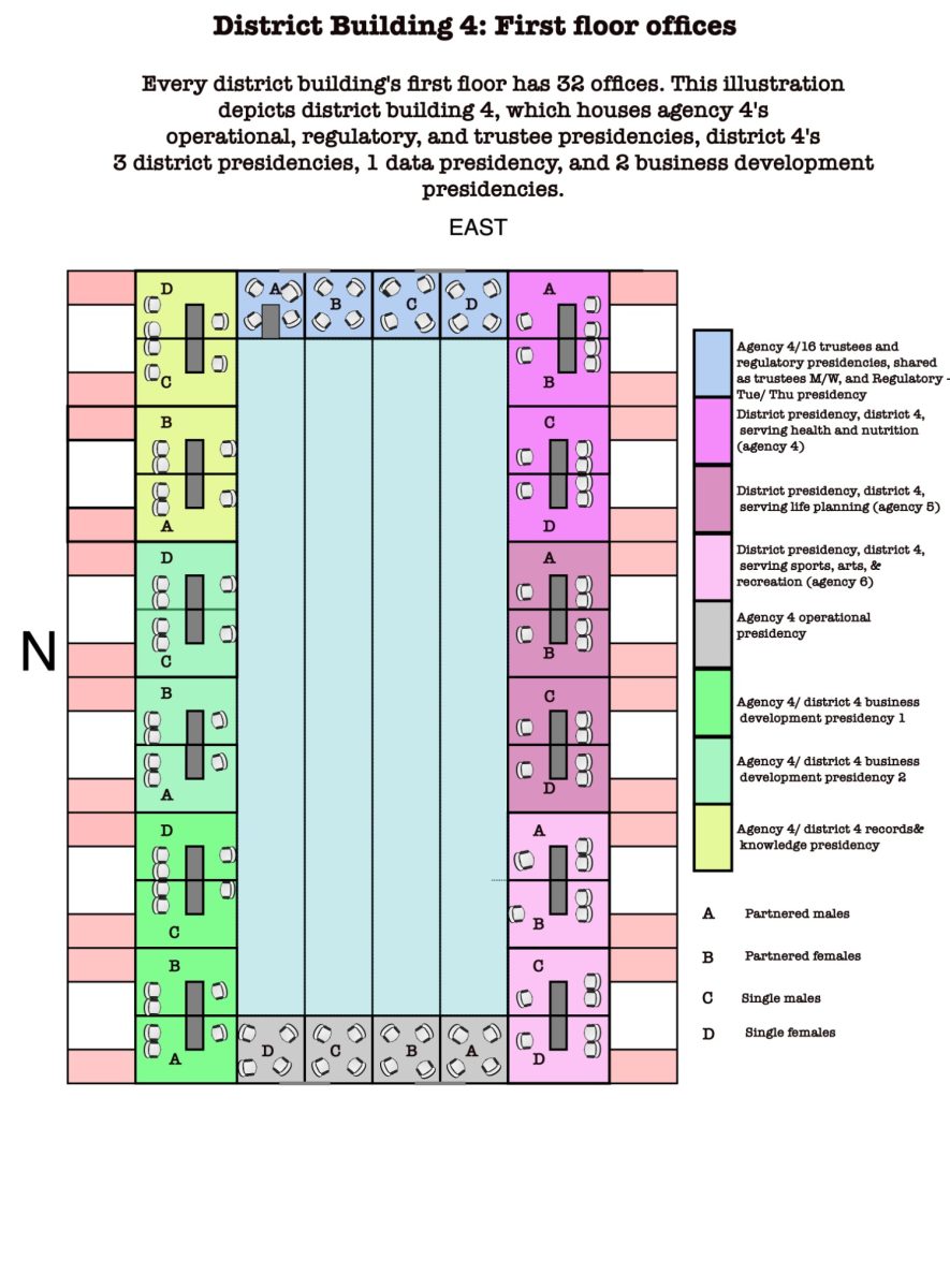 The first floor’s layout is as follows, including other public servants who serve District 4.