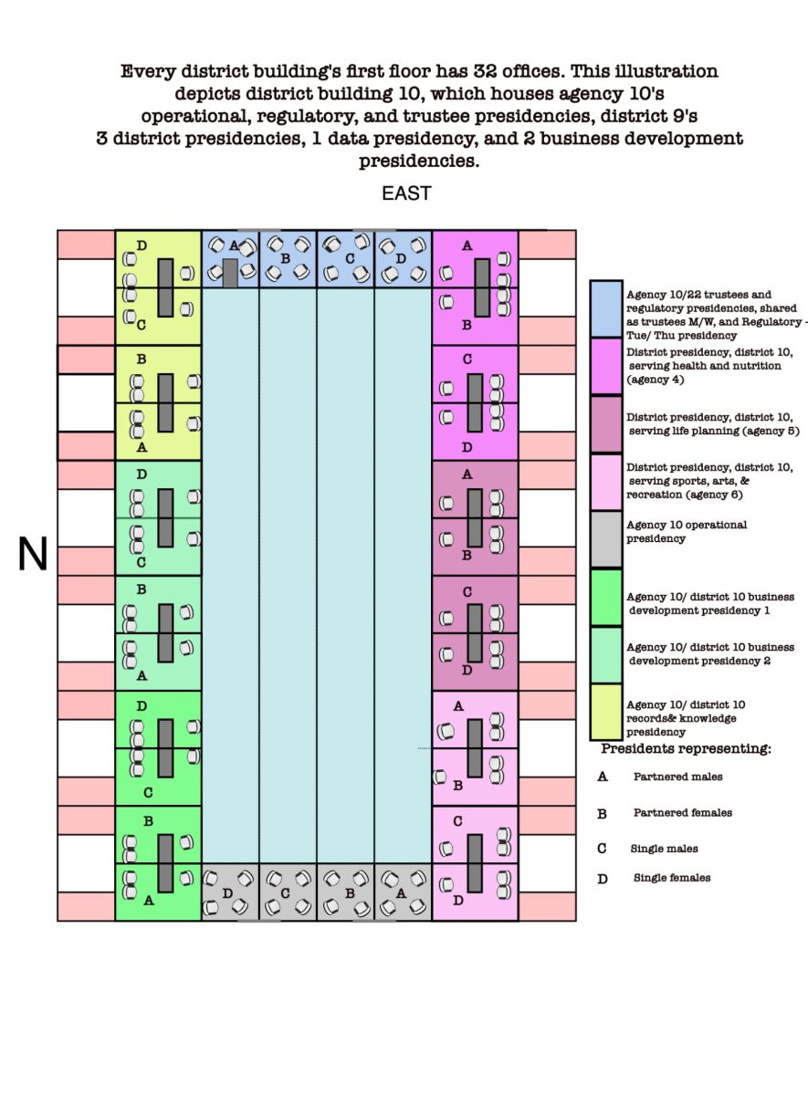 The first floor’s layout is as follows, including other public servants who serve District 10.