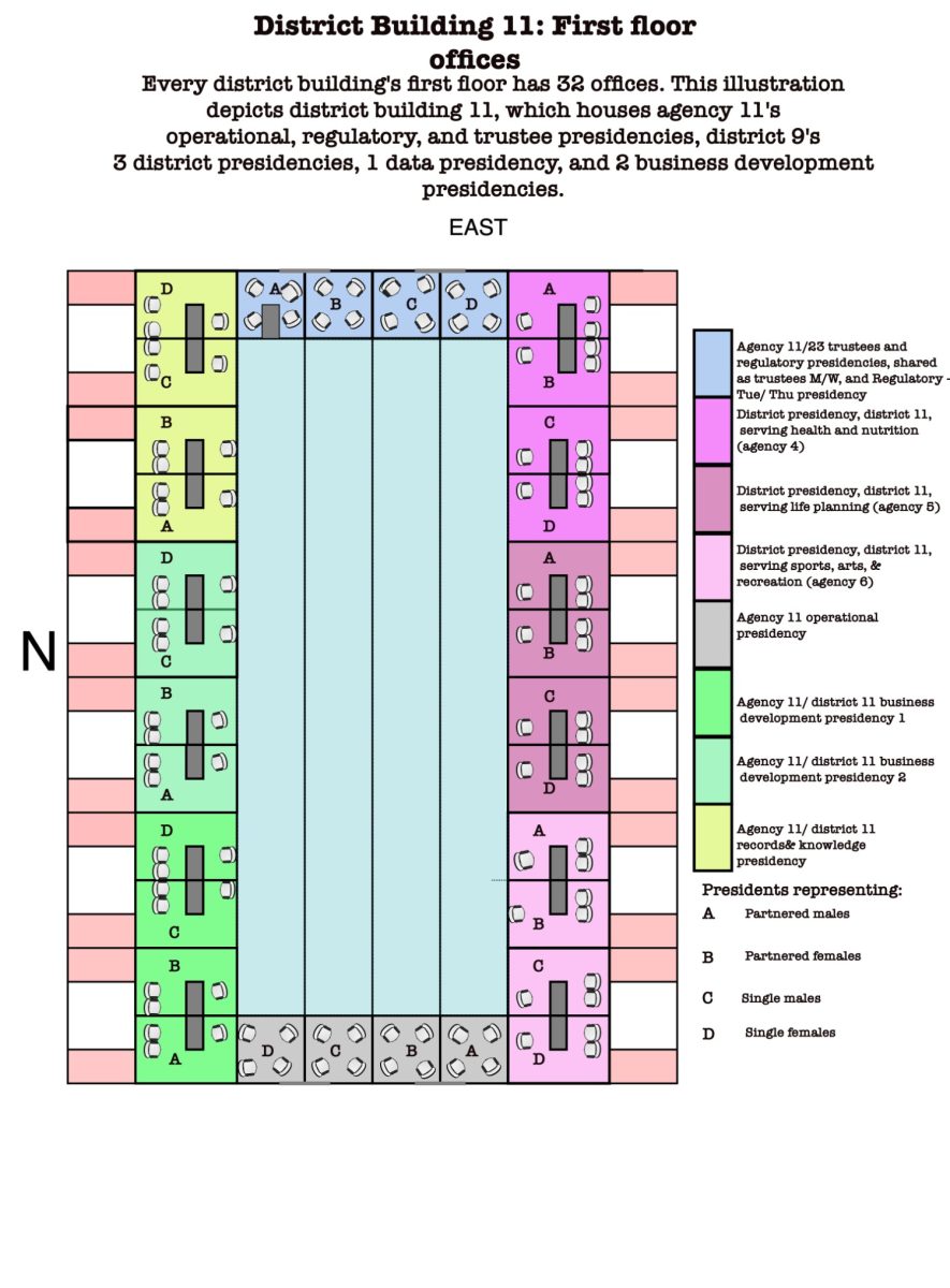 The Governance, IT, and Security Agency’s presidency has permanent, dedicated offices in District Building 11’s first floor, on the western side. Facing them on the eastern side are the offices for trustee presidency and Regulatory Bureau’s operational presidency serving the agency and District 11.