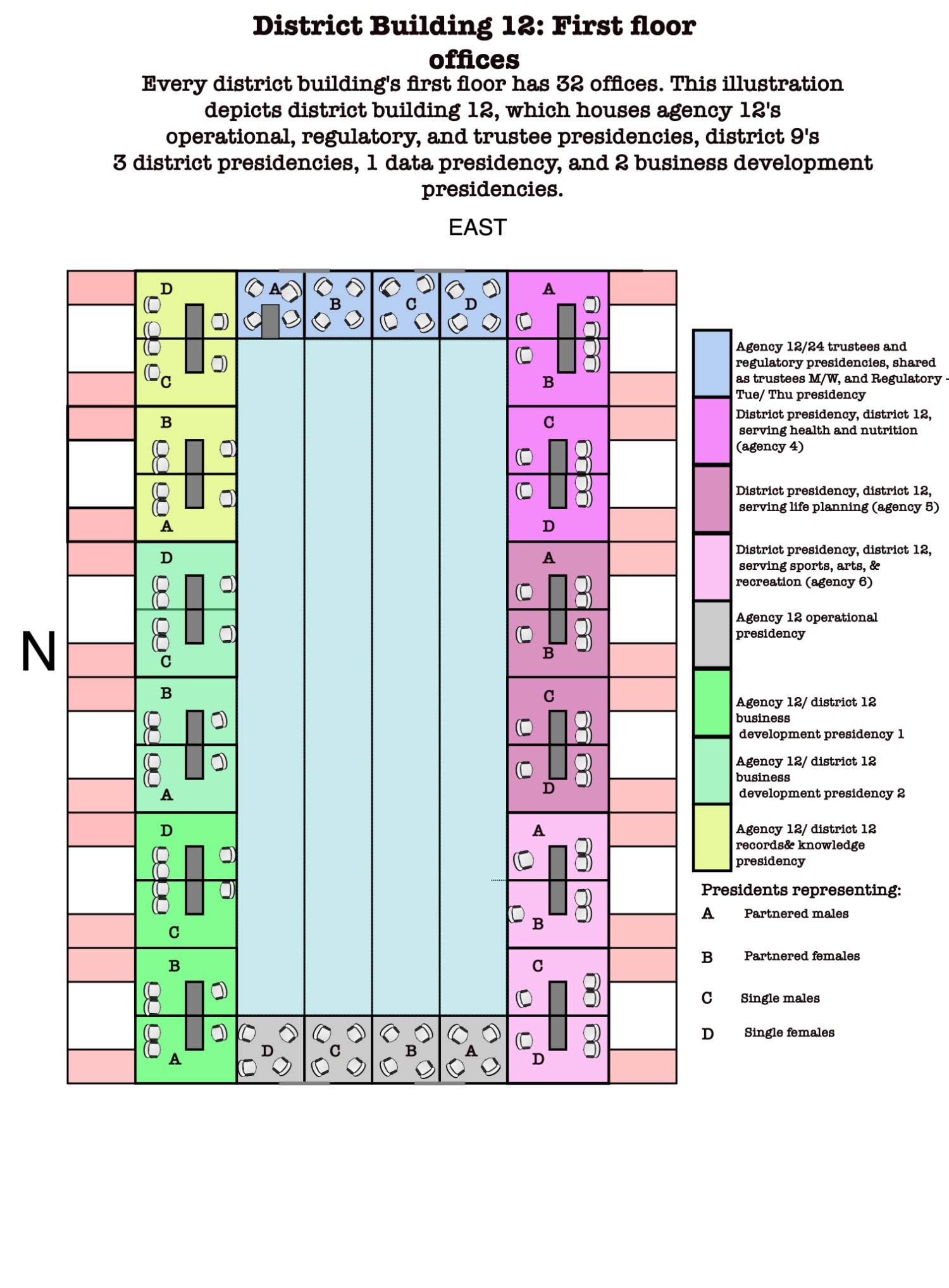 The first floor’s layout is as follows, including other public servants who serve District 12