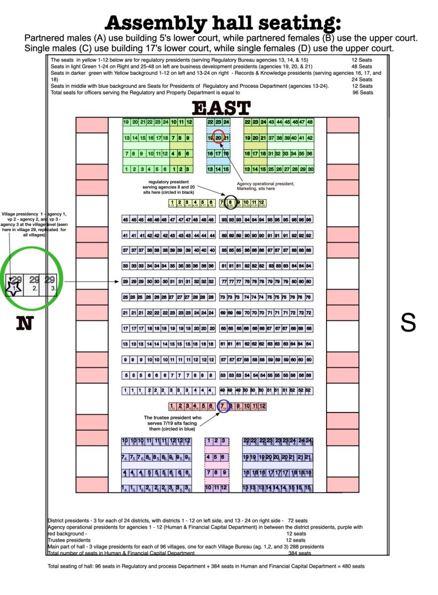 Within an assembly court, the 480 presidents are arranged in terms of demographic presidencies of 3. The Business Development Bureau’s demographic presidency for partnered males (19A, 20A, and 21A) sits as highlighted.